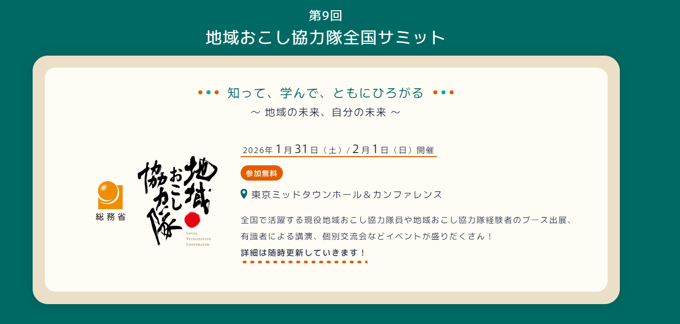 【本イベントは終了しました。】第9回地域おこし協力隊 全国サミット